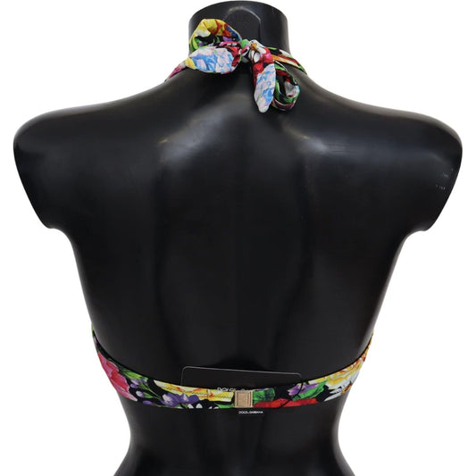 Dolce & Gabbana Multicolor Floral Print Halter Swimwear Bikini Top