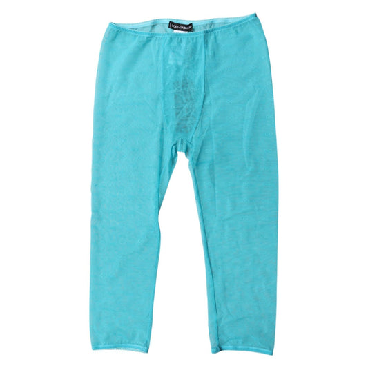 Dolce & Gabbana Light Blue Nylon Logo Lace Leggings Pants Underwear