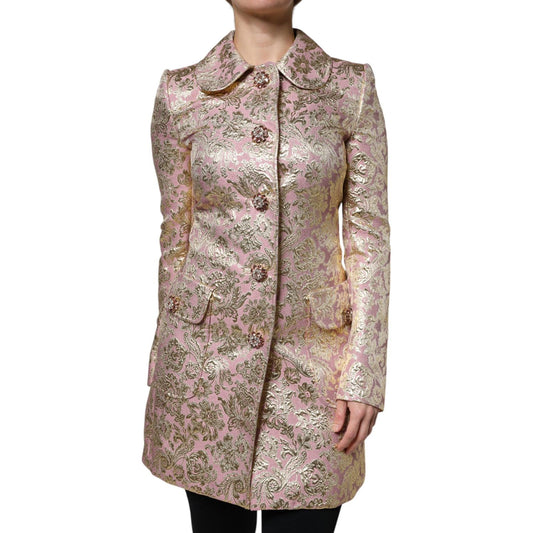 Dolce & Gabbana Metallic Pink Gold Jacquard Jewel Button Coat Jacket
