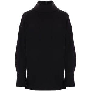 black crepe texture cowl neck drop shoulder long sleeves buttoned cuffs concealed rear zip fastening side slits curved hem High-neck jumper Size and Fit - This piece fits true to size. We recommend you get your regular size. Model is 1,75m / 5ft 8in wearing size 40 (IT)