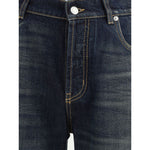 Vintage-effect Jeans by Alexander McQueen feature a five-pocket wide-leg style with belt loops at the waist. Contrasting yellow-orange stitching enhances the garment’s construction, while elaborately finished pocket edges add a touch of sophistication to the retro-inspired look.