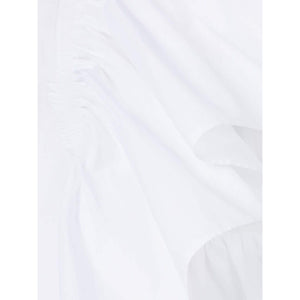 Waterfall ruffle-sleeve cotton shirt from AZ FACTORY featuring white, cotton, poplin texture, classic collar, short sleeves, front button fastening, ruffle cuffs and curved hem. Ruffled sleeves cotton shirt Size and Fit - This piece fits true to size. We recommend you get your regular size. Model is 1,75m / 5ft 8in wearing size 36 (FR)