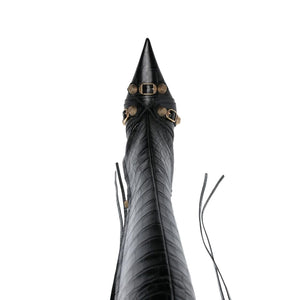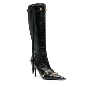 Cagole 90mm pointed-toe boots from BALENCIAGA featuring black, calf leather, embossed crocodile effect, bronze-tone hardware, pointed toe, knee-length, side zip fastening and high heel. Conscious: We've partnered with Good On You – an ethical agency that rates how sustainably brands perform. This item comes from a brand that performs well in relation to their impact on the planet.. Le Cagole leather heel boots Size and Fit - Heel 3,5 in / 9 cm