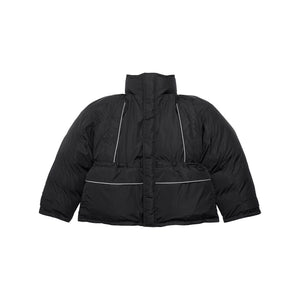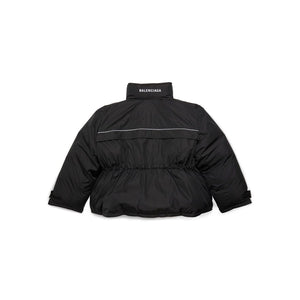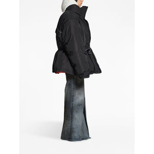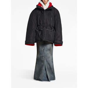 oversized padded parka from BALENCIAGA featuring black, embroidered logo to the rear, padded design, concealed hood, stand-up collar, concealed front press-stud fastening, concealed front zip fastening, long sleeves, drawstring waist, front zip fastening pockets and straight hem. Nylon parka coat Size and Fit - This piece fits true to size. We recommend you get your regular size. Model is 1,84m / 6ft 1in wearing size 2 (NUM)