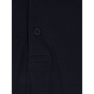 navy blue short front button fastening short sleeves Interwined cotton polo shirt Size and Fit - This piece fits true to size. We recommend you get your regular size. Model is 1,84m / 6ft 1in wearing size 2 (NUM)