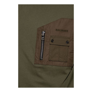 Balmain cotton t-shirt with short sleeves and chest pocket with zip fastening and additional pocket with button fastening