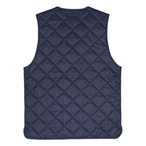 navy blue padded design tonal stitching V-neck sleeveless two front patch pockets short side slits front zip fastening Miller quilted vest Size and Fit - This piece fits true to size. We recommend you get your regular size. Model is 1,84m / 6ft 1in wearing size 40 (UK/US)