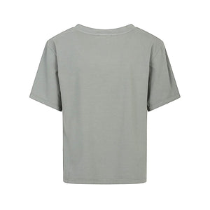 Military green T-shirt, half sleeves, crew neck, straight hem. Cotton t-shirt Size and Fit - This piece fits true to size. We recommend you get your regular size. Model is 1,75m / 5ft 8in wearing size 40 (IT)