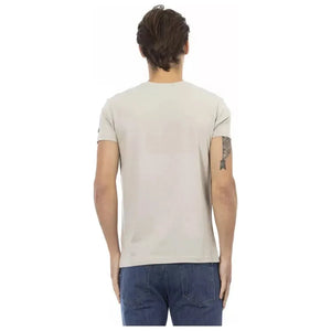 Embrace the effortless sophistication of Trussardi Action with this V-neck T-shirt, a seamless blend of casual elegance and contemporary flair. The beige hue serves as a versatile canvas for the striking front print, ensuring you stand out with subtlety. Crafted from a premium mix of cotton and viscose, it promises comfort and durability for the style-conscious gent. Perfect for elevating your off-duty wardrobe.