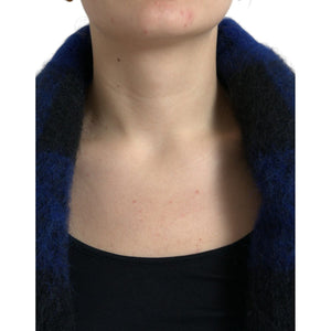 Dolce & Gabbana Black Blue Buffalo Check Poncho Coat Sweater