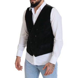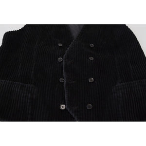 Dolce & Gabbana Black Cotton Double Breasted Waistcoat Vest