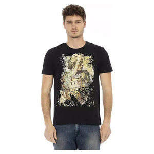 Elevate your everyday ensemble with this sleek, Trussardi Action tee. Boasting a sharp front print, this black T-shirt is the epitome of bold street fashion. Crafted for the modern man, its short sleeves and classic round neck serve up comfort without compromising on style. Get ready to seize the streets with unstoppable charisma.