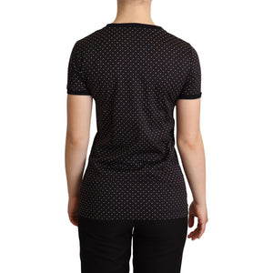 Dolce & Gabbana Black Dotted Crewneck Cotton T-shirt
