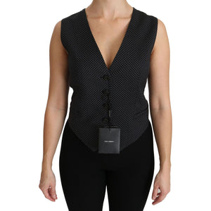 Dolce & Gabbana Black Dotted Waistcoat Vest Blouse Top