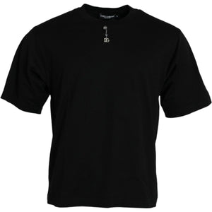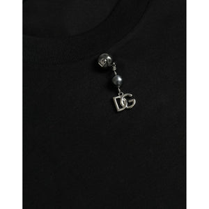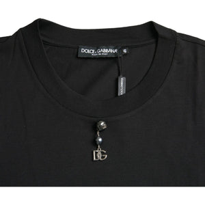 Dolce & Gabbana Black Embellished Cotton Crew Neck T-shirt