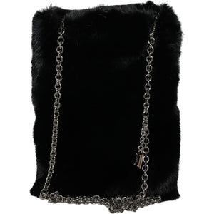 Dolce & Gabbana Black Faux Fur Silver Chain Crossbody Shoulder Purse Bag