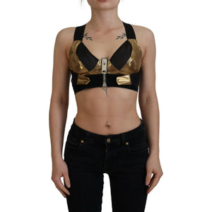Dolce & Gabbana Black Gold Sleeveless Cropped Bustier Top