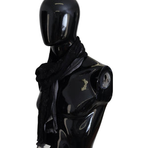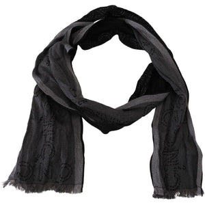Costume National Black Grey Logo Print Men Neck Wrap Shawl Scarf