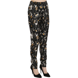 Dolce & Gabbana Black Jazz Club Print High Waist Tapered Pants