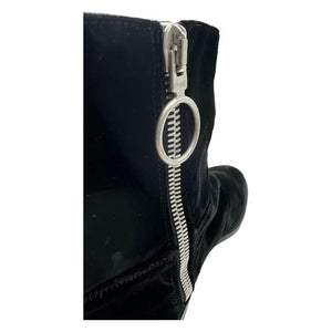 Unleash enviable chic with these statement Off-White ankle boots, masterfully crafted from premium suede calfskin. Infused with the brand’s signature edge, they feature a sleek side zip opening for easy wear and a bold logo print on the heel that proclaims your fashion status. Made in Italy, these boots are a true testament to sartorial excellence and contemporary cool.