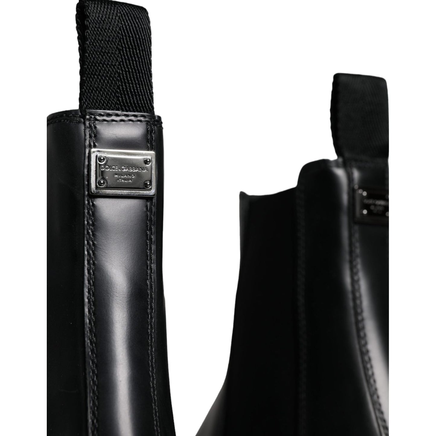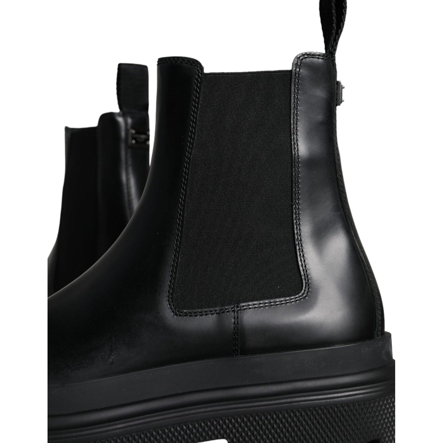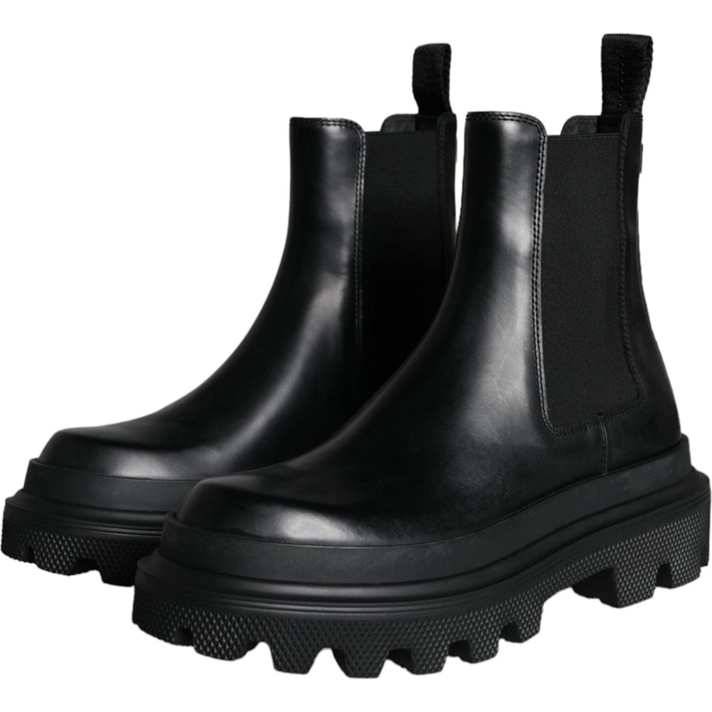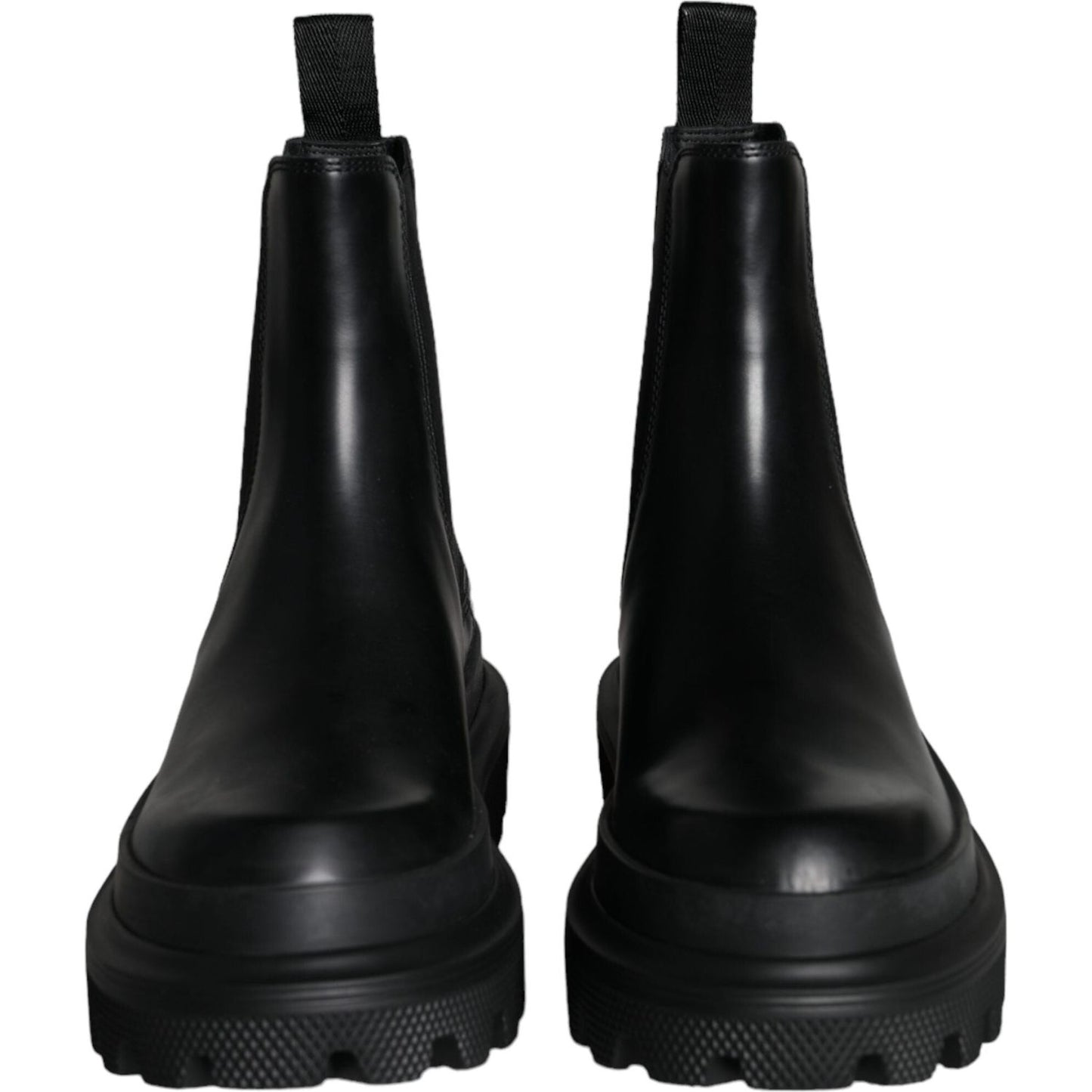 Dolce & Gabbana Black Leather Slip On Stretch Trekking Boots Shoes
