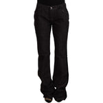 GF Ferre Black Mid Waist Cotton Denim Straight Boot Cut Jeans