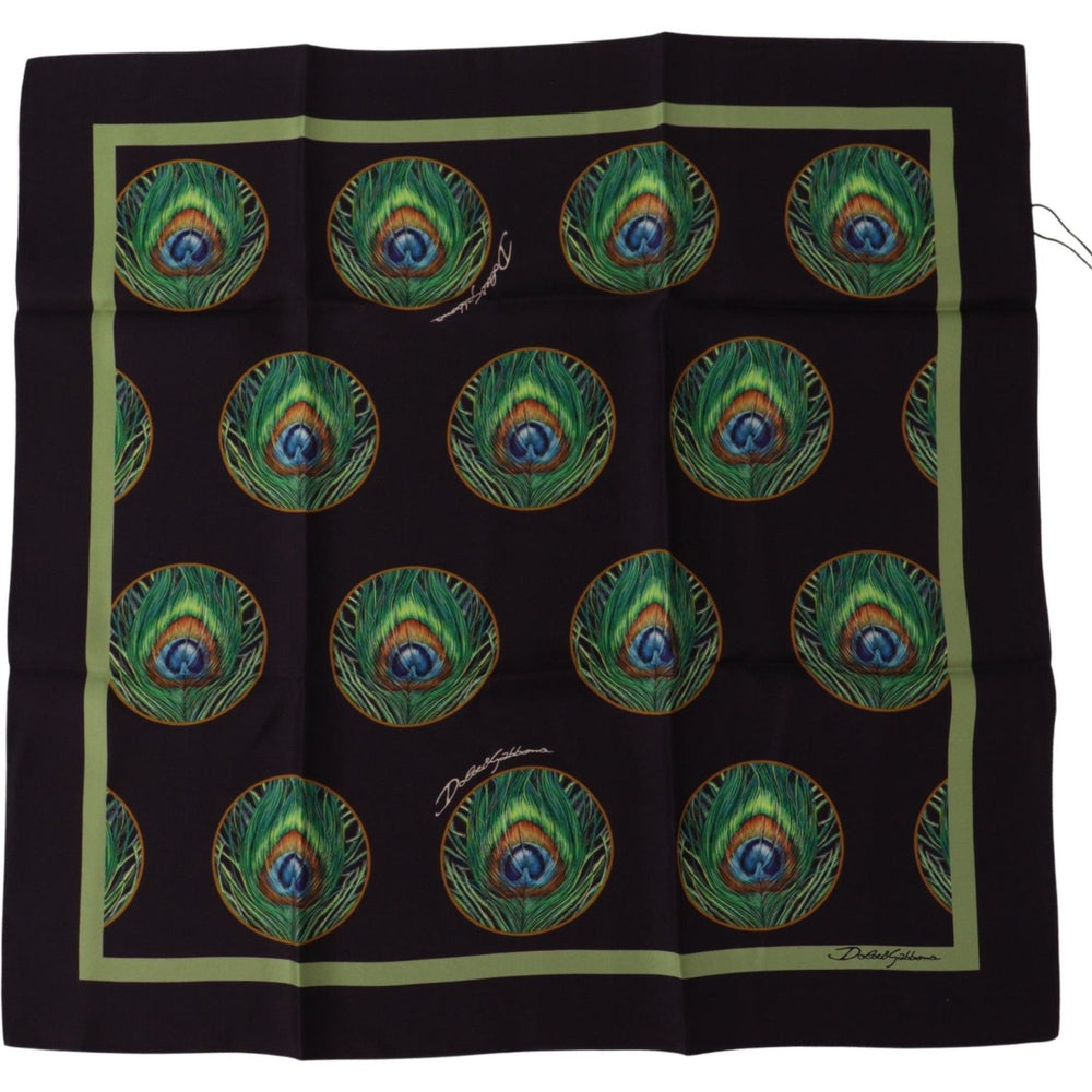 Dolce & Gabbana Black Peacock Feather DG Printed Square Handkerchief Scarf