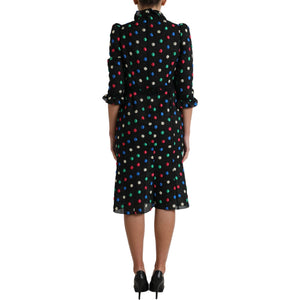 Gorgeous brand new with tags, 100% Authentic Dolce & Gabbana high neck short sleeve midi dress with multicolor polka dots.