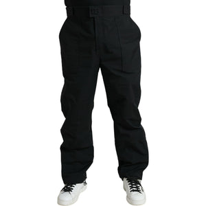 Dolce & Gabbana Black Polyester Logo Straight Pants