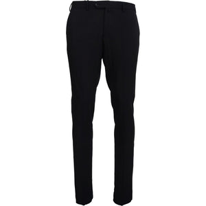 Domenico Tagliente Black Polyester Tapered Dress Pants