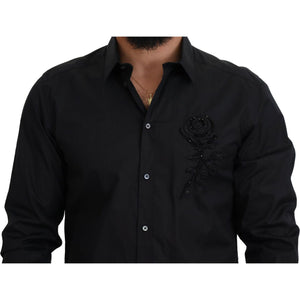 Dolce & Gabbana Black Roses Slim Fit Cotton Shirt