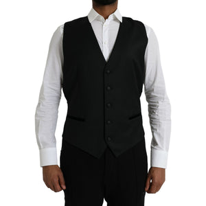 Dolce & Gabbana Black Silk Waistcoat Dress Formal Vest