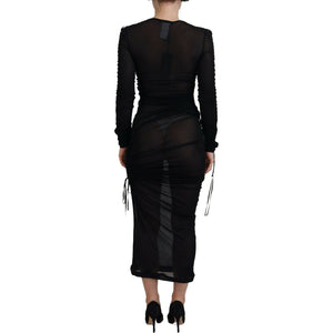Dolce & Gabbana Black Viscose Bodycon Sheath Midi Dress