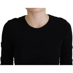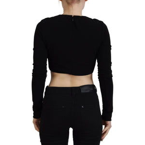 Dsquared² Black Viscose Cropped Round Neck Long Sleeves Top