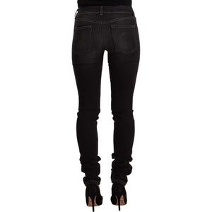 GF Ferre Black Washed Mid Waist Cotton Skinny Slim Fit Jeans
