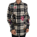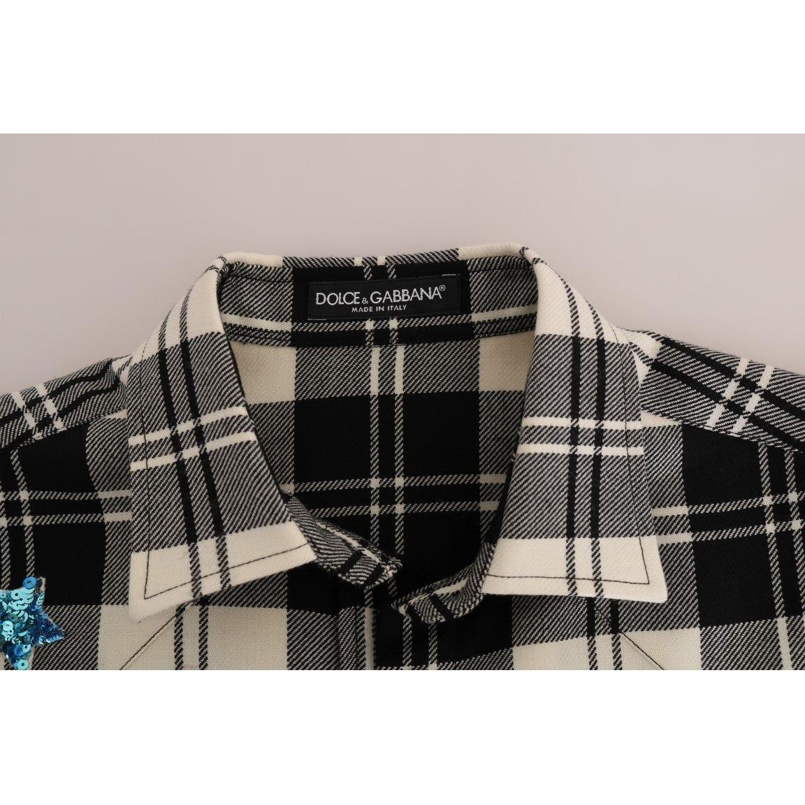 Gorgeous brand new with tags, 100% Authentic DOLCE & GABBANA black and white checkered crystal and sequined Fairy tale wool shirt.