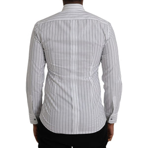 Dolce & Gabbana Black White Striped Formal Dress GOLD Shirt