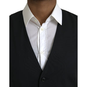 Dolce & Gabbana Black Wool Formal Dress Waistcoat Vest
