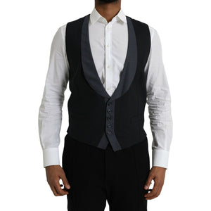 Dolce & Gabbana Black Wool Waistcoat Dress Formal Vest