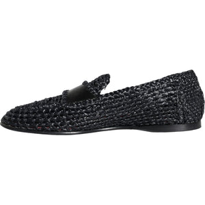 Dolce & Gabbana Black Woven Raffia Slip On Loafers Men Shoes