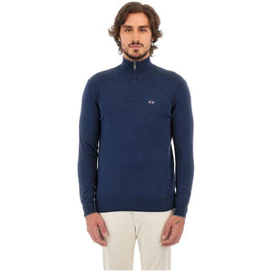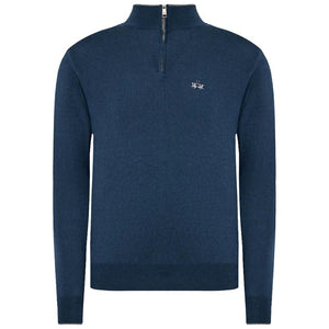 La Martina Blue Wool Men Sweater with Half Zip Closure