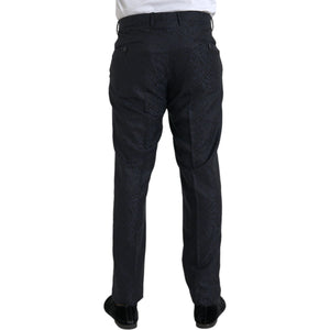 Dolce & Gabbana Blue Brocade Wool Skinny Men Dress Pants