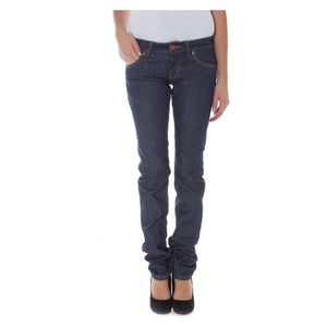 5 POCKET JEANS, BUTTON AND ZIP, LOW RISE, NARROW LEG, CONTRASTING SEAMS, LOGO