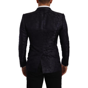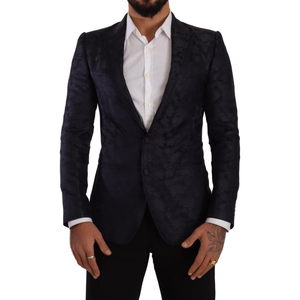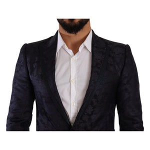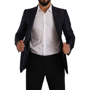 Dolce & Gabbana Blue Floral Jacquard Silk Coat MARTINI Blazer
