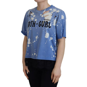 Dsquared² Blue Goth Gurl Print Black Lace Cotton Tee T-shirt