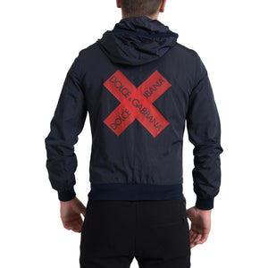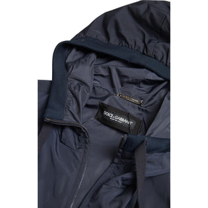 Dolce & Gabbana Blue Hooded Logo Polyester Full Zip Sweater