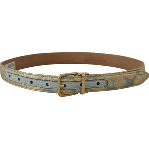 Dolce & Gabbana Blue Leather Jacquard Embossed Gold Metal Buckle Belt
