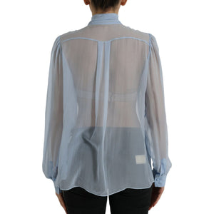 Dolce & Gabbana Blue Long Sleeves Ascot Collar Blouse Top