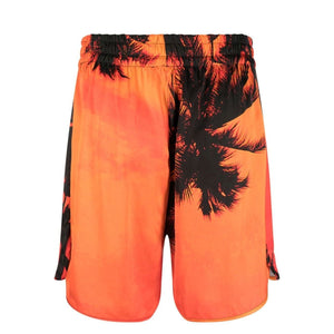 palm-tree print swim shorts from BLUE SKY INN featuring orange, palm tree print, elasticated waistband, straight leg and curved hem. Be mindful to try on swimwear over your own garments.. Printed swimming trunks Size and Fit - This piece fits true to size. We recommend you get your regular size. Model is 1,84m / 6ft 1in wearing size M