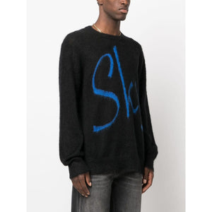 logo-print crew-neck jumper from BLUE SKY INN featuring black, knitted construction, logo print to the front, crew neck, long sleeves and ribbed cuffs and hem. Logo wool blend sweater Size and Fit - This piece fits true to size. We recommend you get your regular size. Model is 1,84m / 6ft 1in wearing size M